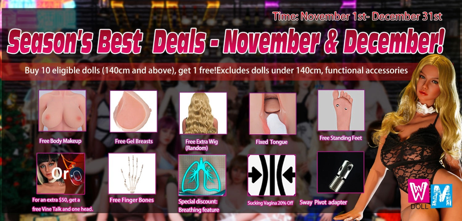 We also have some special deals unique to our store. With some dolls, several upgrades are included as standard (these add-ons cost extra in other stores). For the popular brand WM-Doll always includes an extra head when you buy from Docklandet.